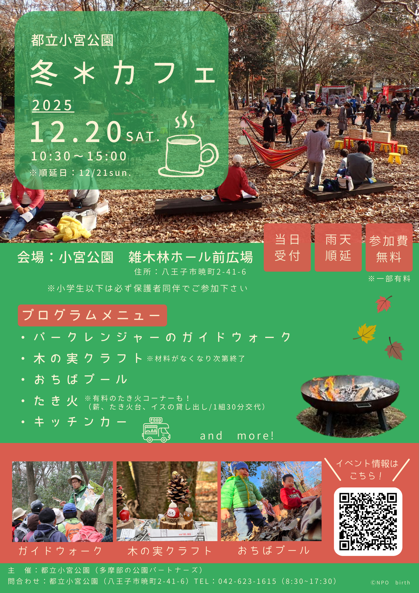 キッチンカー、たき火ブックコーナー、ハンモック、おちばプール、クリスマスにちなんだクラフトコーナーも登場!