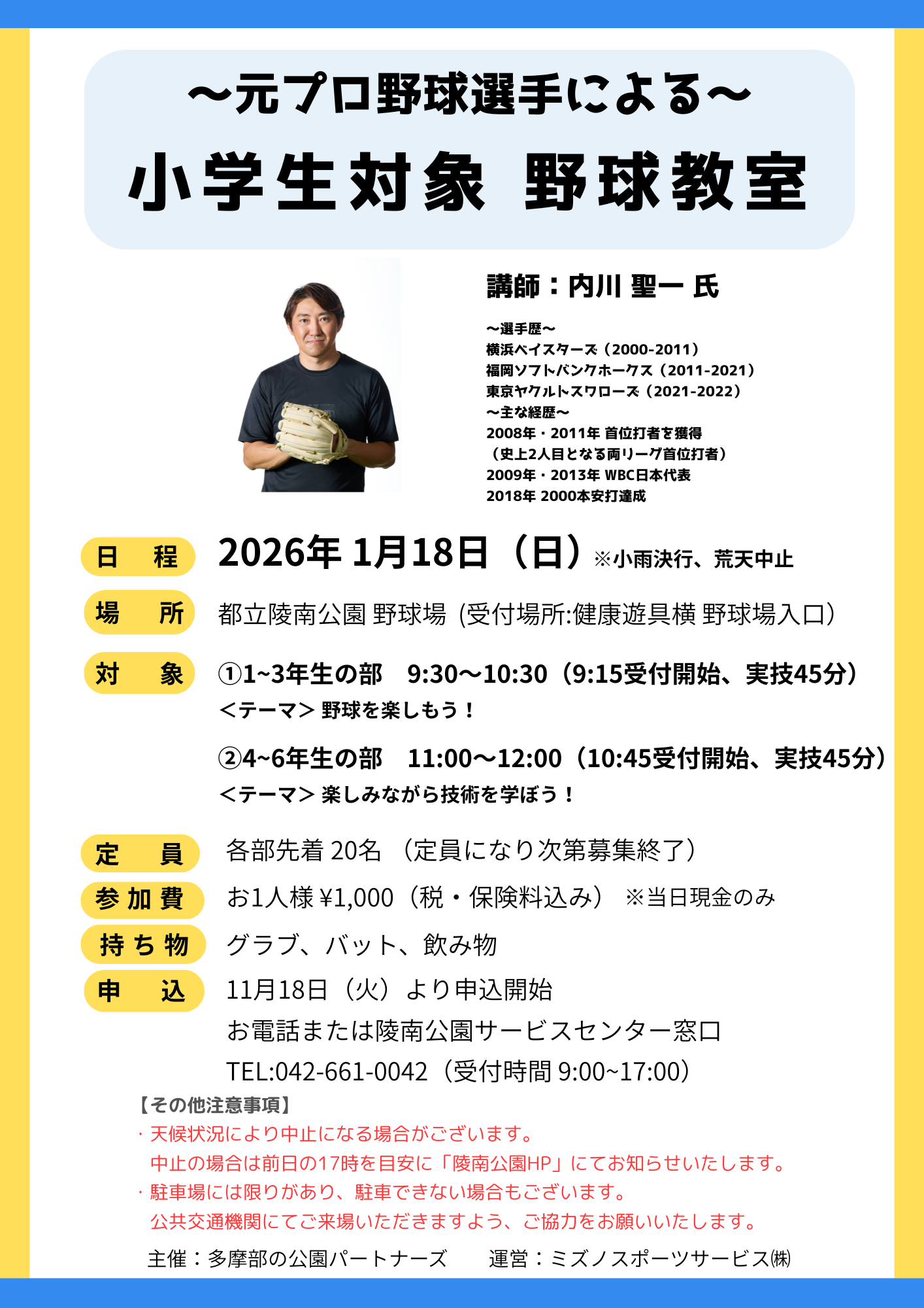 元プロ野球選手による ☆小学生対象 野球教室☆