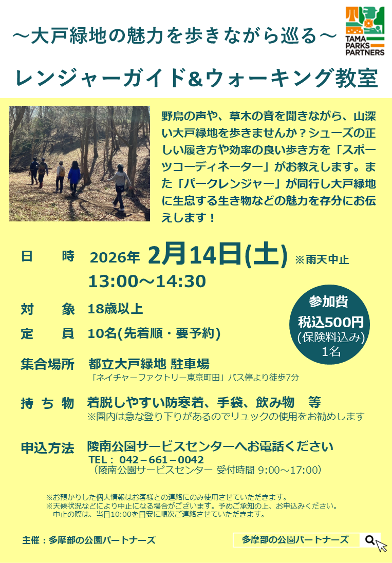 「歩き方」を意識しながら、大戸緑地の魅力を発見しませんか?