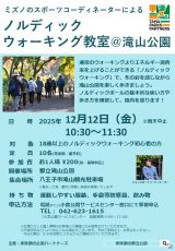 はじめての方、大歓迎!! 専用のポールを使用し、通常のウォーキングより、エネルギー消費率を上げることができるノルディックウォーキング。 運動不足の解消や、膝や腰に不安のある方にもおすすめです! ノルディックポールは無料でお貸しいたしま…